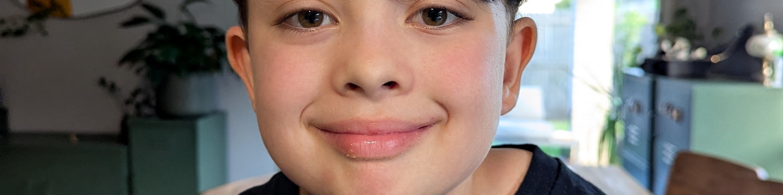 He now attends school full-time where he enjoys science and math. He also loves swimming, animals and video games, and is a talented artist.
